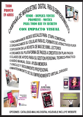 TODO PRONTO EN 3 DIAS VENDE - DUPLICA VENTAS PROMUEVE - MOTICA PARA TODO HAY UN SECRETO CON IMPACTO VISUAL Difusión OPCIONES CATALOGO-MAILING DIGITAL HOJEABLE INCLUYE WEBSITE